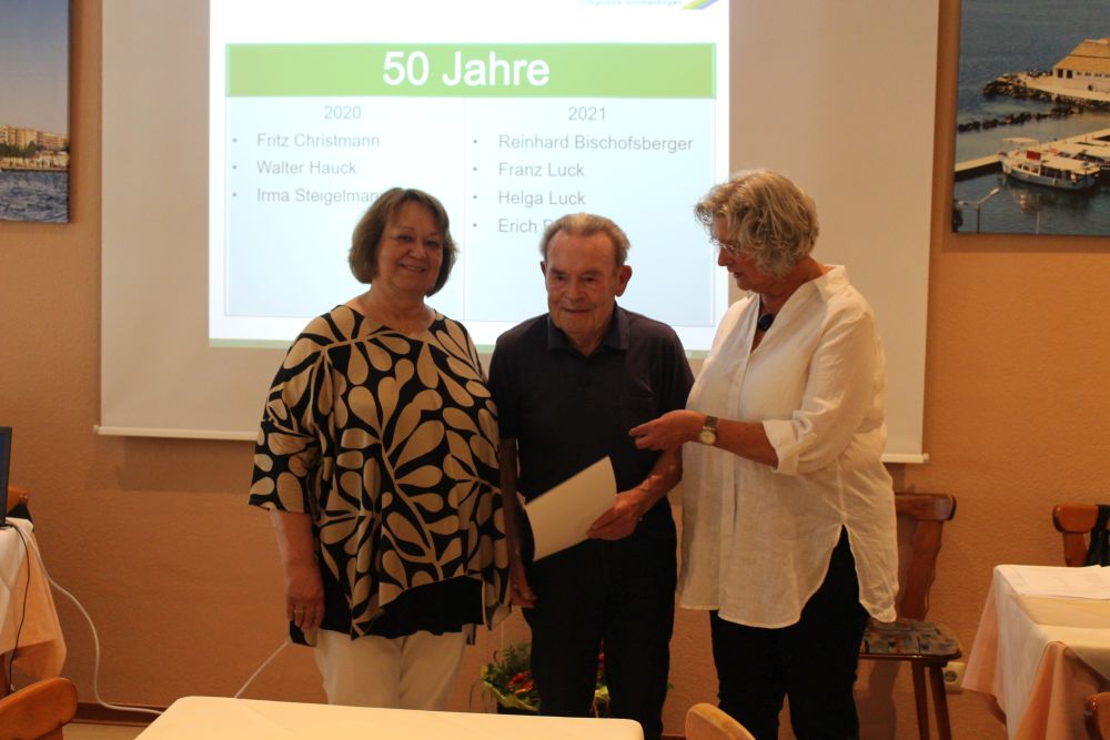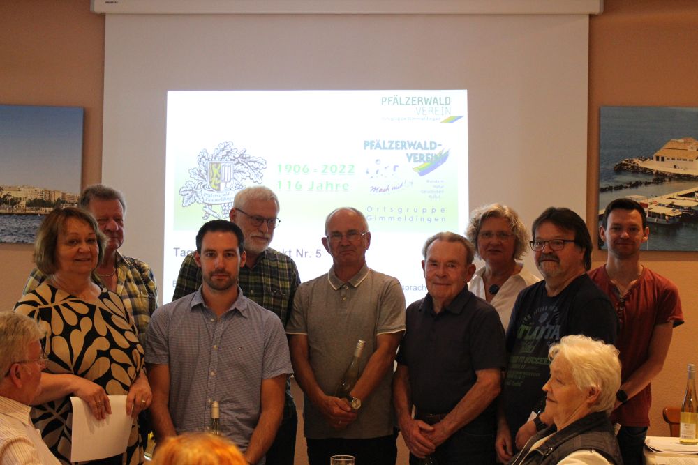 Am Samstag 09.07.2022, fand die von der 1. Vorsitzenden Edelgard Schäker souverän geführte, Mitgliederversammlung der Ortsgruppe Gimmeldingen des Pfälzerwald-Vereins statt. Hierbei wurden zahlreiche Mitglieder für ihre langjährige Mitgliedschaft geehrt, und zwar für 40 Jahre Erich und Inge Estelmann, Wolfgang Schöneberger, Rosemarie Schupp, Jürgen Trapp, Werner Ullrich, Gustav Brunner, Josefine Feldmann und Jürgen Wittmann. Bereits 50 Jahre gehören dem Verein Fritz Christmann, Walter Hauck, Irma Steigelmann, Reinhard Bischofsberger Erich Peters sowie Franz und Helga Luck an.